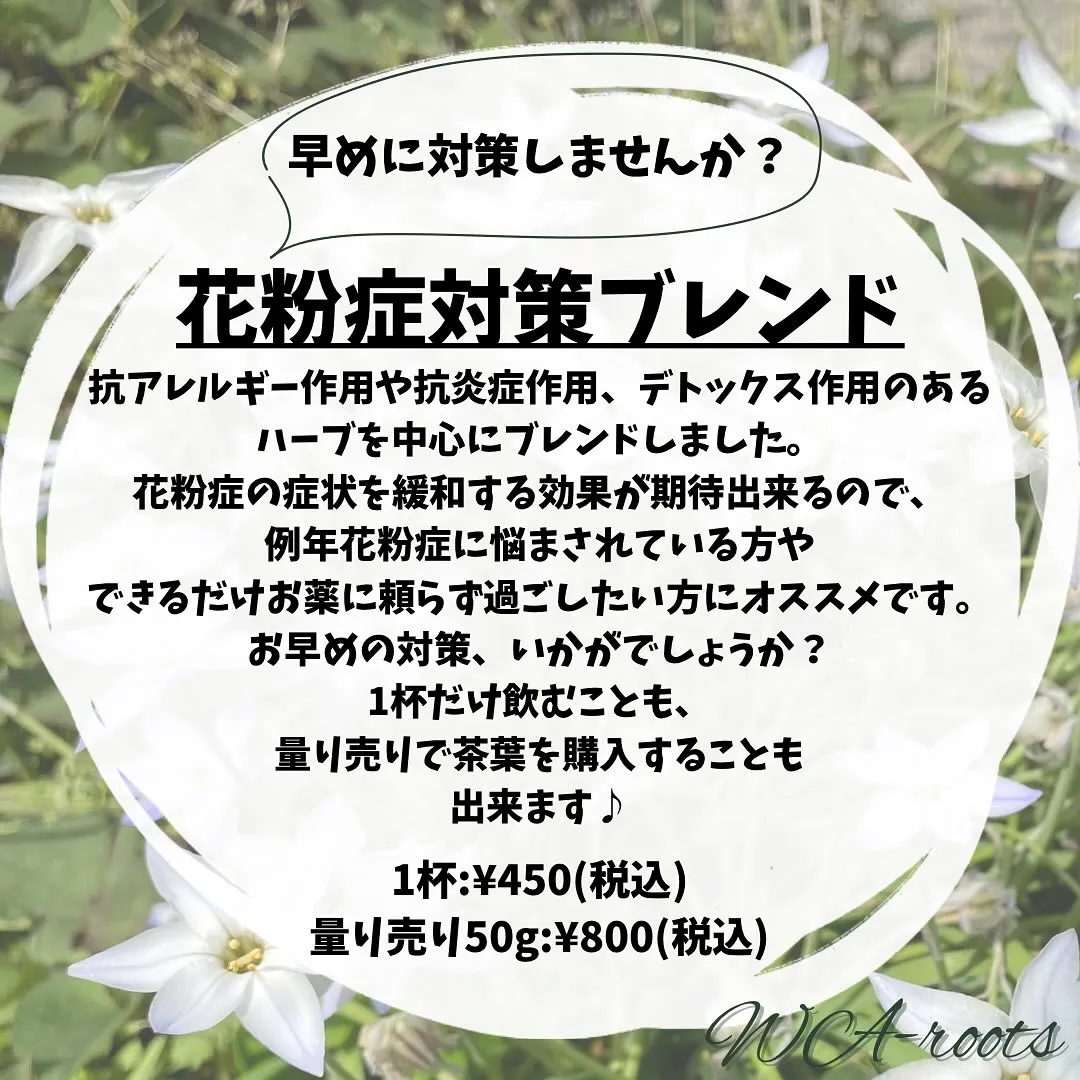 ということで、毎年ご好評を頂いているWA-rootsの花粉症対策ブレンド、今年は早めに販売開始します!